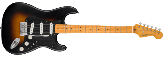Squier 40th Anniversary Stratocaster®, Vintage Edition, Maple Fingerboard, Black Anodized Pickguard, Satin Wide 2-Color Sunburst