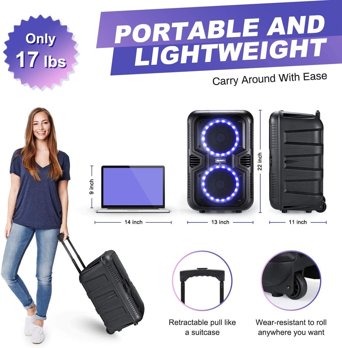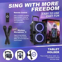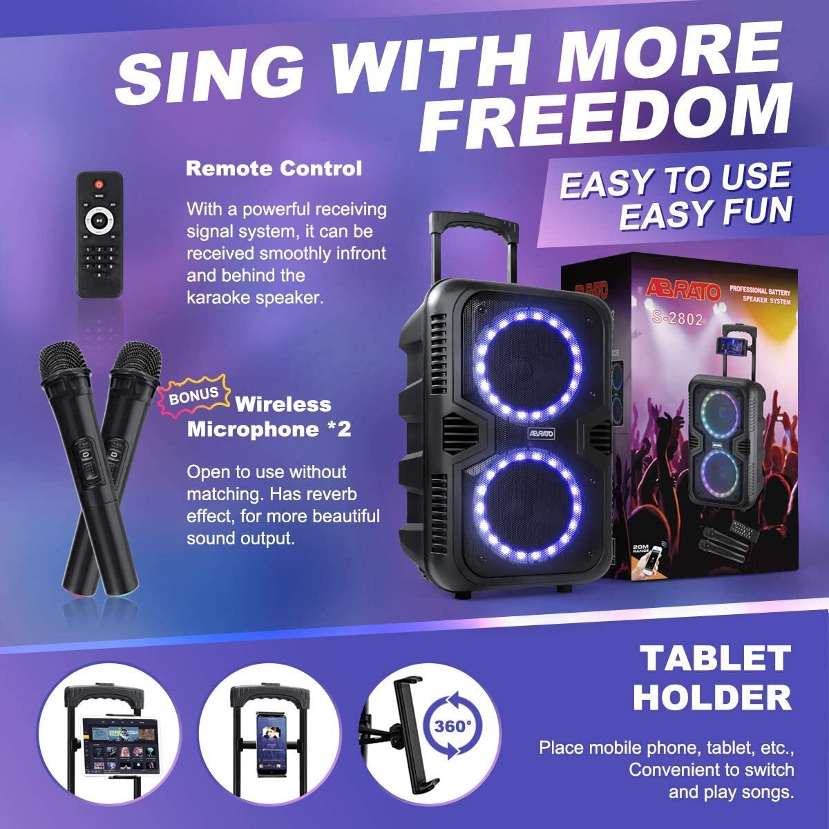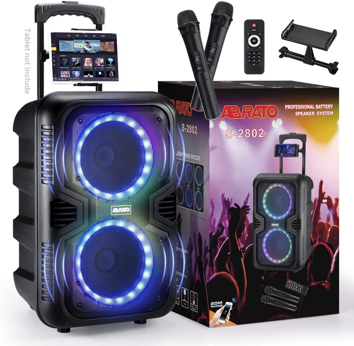 Karaoke Machine for Adults and Kids, Abrato Portable Bluetooth Karaoke Speaker with Dual 8'' Subwoofers, DJ Lights, 2 Wireless Microphone, Wireless PA System for Party/Lecture/Show