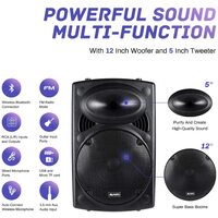 The ABRATO PORTABLE and powerful PA and Karaoke system with 12" woofer deep and rich, booming bass and Tweeter horn for Crisp treble sound complements this system as a great value and sounding system Whether you use this while working out in the gym or for out door and indoor announcements this system will deliver you commensurate sound for specific applications .
