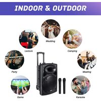 Karaoke System for Adults and Kids, Abrato 12'' Woofer Bluetooth Connectivity, Bonus 2 Wireless Microphone, Rechargeable PA System-Audio Recording for Party