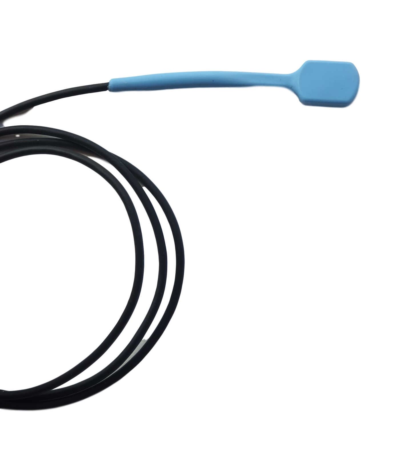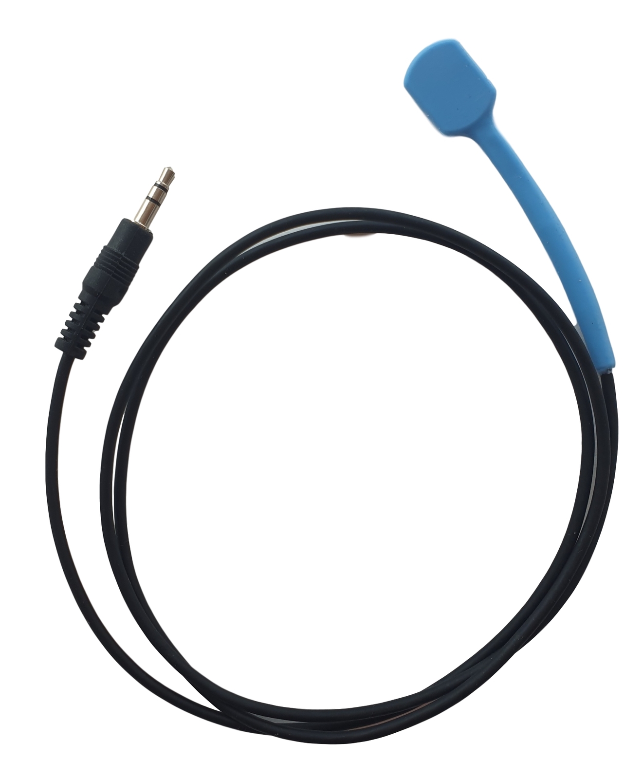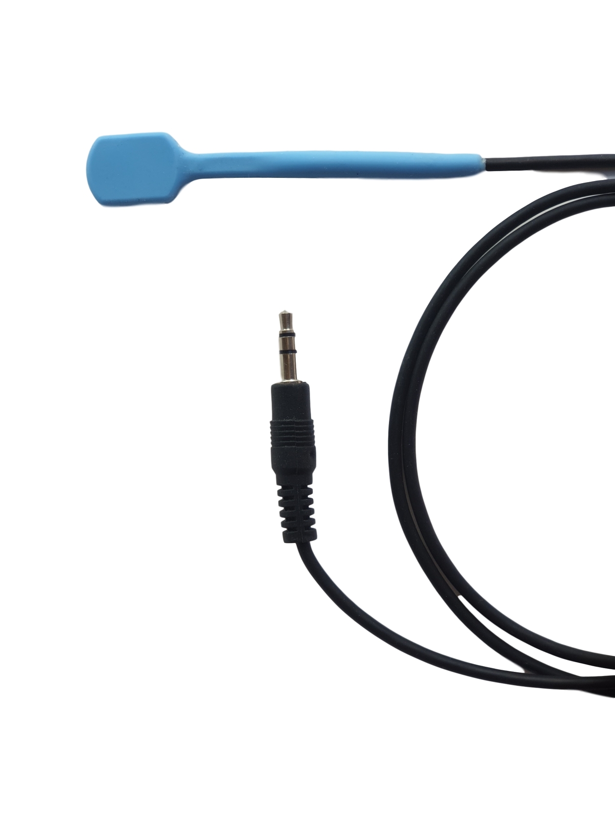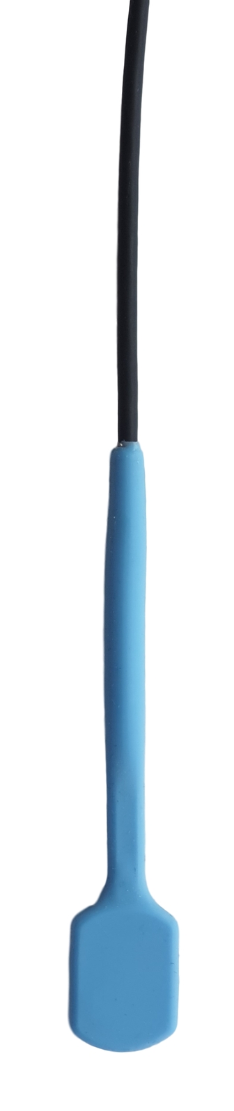 The Bite Switch is comprised of a durable, sealed, flat switch assembly, measuring .75 inches long (1.9 cm) by .5 inch wide (1.3 cm), with a 36 inch (91 cm) cable, and a 3.5mm (1/8”) plug. During use, the switch is placed in the mouth and the front teeth clamp down with gentle pressure to actuate it. A food-grade, silicone covering from FDA approved materials protects the switch. A soft click indicates the switch has been pressed and again when it is released.