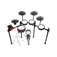 Designed for maximum playability, the Alesis Nitro Ultimate is a nine-piece electronic drum kit. A mesh kick drum tower with kick pedal, dual-zone mesh toms and snare, dual-zone cymbals with choke, and a stand-mounted hi-hat controller are all included in this kit, which offers a versatile and responsive arrangement for any type of drumming.