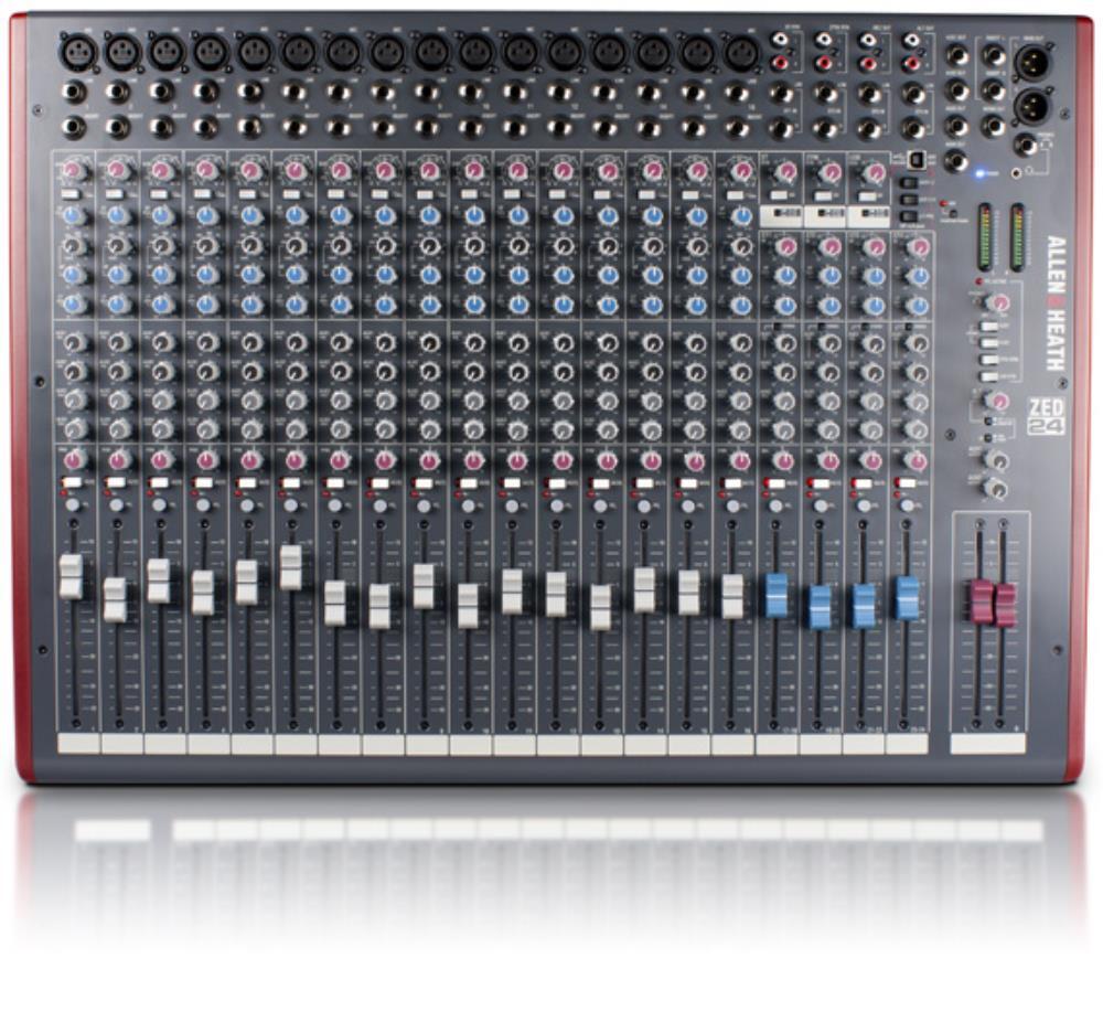 ZED-24 has an amazingly advanced feature-set for a mixer at this level – it has 23 independent sources to the mix, 10 independent outputs, 4 aux sends, Configurable USB audio in/out, playback and effects, an exceptional dual stereo input capability, etc