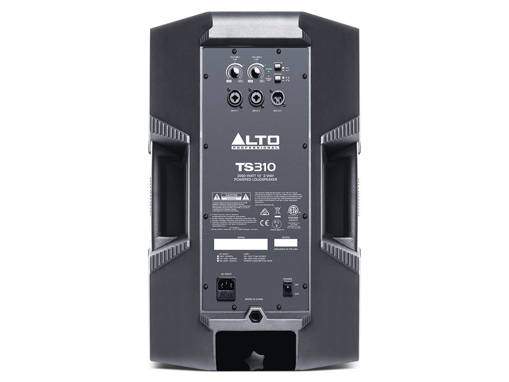 ALTO TS310 have been engineered with 2000 watts of dynamic bi-amplified power and newly-designed transducers to deliver a big sound at a low based price structure The Alto Pro TS310 are a smart yet sturdy industrial design, lightweight but rugged construction, versatile mounting/placement application and easy to use interface which all adds up to a great solution for the Musical and Vocal Market place