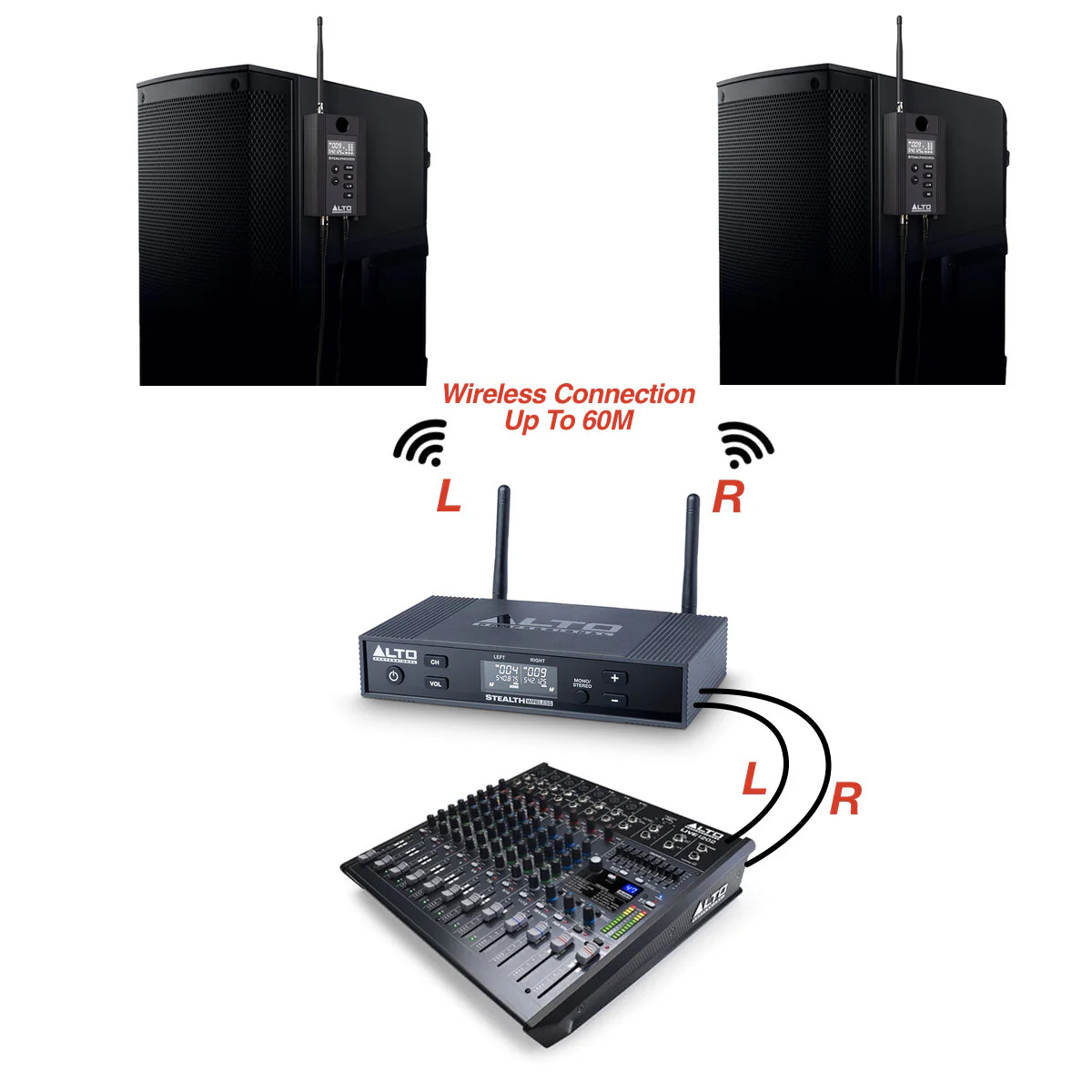 Alto Professional Stealth Wireless CONVERTER -CONVERTS any POWERED ACTIVE SPEAKER to wireless from you mixer .Perfect in rooms where cables may intrude or pose a threat of tripping or difficulty for accessing areas The easy-to-use Stealth Wireless system