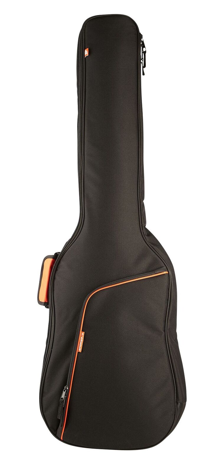 The Armour ARM1250B Bass Gig Bag with 10mm Padding, large Size 10 Zippers and Handle Supports. Its large front pocket also gives you plenty of storage. Suitable for most standard shaped Electric Bass guitars.