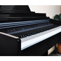 Many convenient features, such as the ability to make multi-track recordings of your own performance with complete professionally produced orchestration, give the Artesia DP-150e outstanding flexibility. The deluxe cabinet style and finish plus it’s symphonic sound delivery system will give you years of musical enjoyment and memories. It’s the complete package with teaching lessons and play along songs. A grand-piano experience at a fraction of the size.