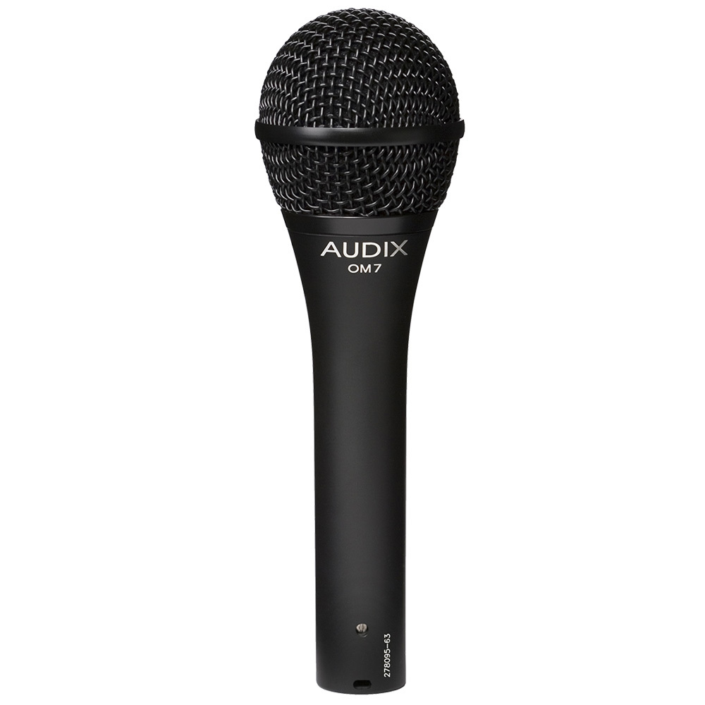 The OM7 vocal dynamic microphone is used by professional sound companies, front of house and mixing engineers as well as high-profile fixed installations. The OM7 provides unprecedented gain before feedback on concert level stages without sacrificing sound quality. In addition, the mic is very resistant to feedback on extremely loud stages and for performers who tend to cup the microphone with both hands.