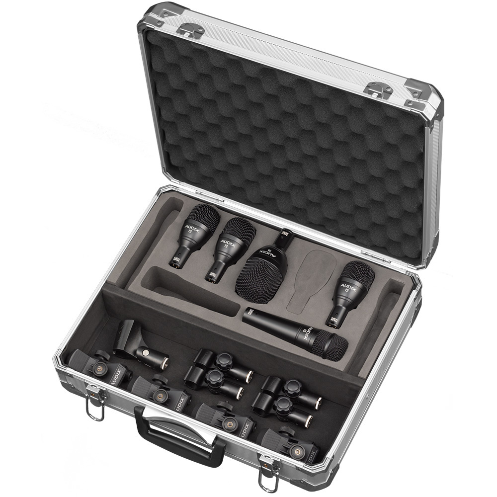 The FP5 Drum Pack contains a combination of f2, f5, and f6 dynamic microphones. The f5 is tuned for snare drum and can be used as well for bongos, timbales, guitar cabinets, and acoustic instruments; the f2 is ideally suited for rack and floor toms, congas, djembe, bongos, timbales, brass, and woodwind instruments. The f6 dynamic microphone, with its extended bass response, is designed for kick drum, bass cabinets, cajon, and other low-frequency instruments.
