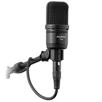 Large diaphragm condenser microphone. Ideal for vocals, choir, piano, acoustic instruments and overheads. Fixed-charge capsule featuring a 30 mm gold-sputtered diaphragm for wide and natural frequency response. Unique internal shock mount. Double woven steel mesh grille and ultra-thin acoustic foam for exceptional pop resistance. Switchable 10 dB pad and bass roll-off. Includes carrying case and clip. Requires 48-52 V phantom power. Cardioid. "