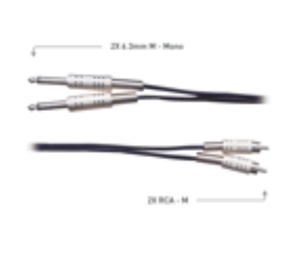 Australasian 2 x 6.3 mono jack plug (M) to 2 x RCA jack (M). Chrome jacks. 6 foot.