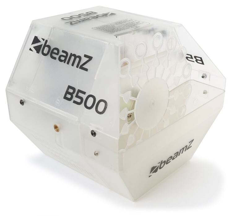 This lightweight, durable unique transparent bubble unit creates bubbles at a high output rate that defies its small size. Because of the transparent housing the LEDs inside give this a special effect. Plug and play, straight out the box.- Bubble machine with RGB LEDs