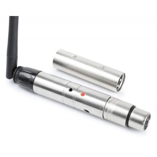 A compact wireless DMX transmitter/receiver which can control up to 7 universes. Universes are marked with a coloured LED in the chassis. You can use multiple receivers on a single transmitter.- Compact wireless DMX transmitter & receiver