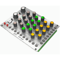 The CLOCKED SEQUENTIAL CONTROL MODULE 1027 is a classic 8-step 3 channel sequencer. The 1027 features integral 8-step counter with a large rate control knob and low/high range switch to set the perfect tempo for your masterpiece, the counter also features a pulse width control and a switch to enable external control for added flexibility, a large illuminated on/off switch and manual step and reset switches. The 3 sets of 8 color coded knobs allow you full control over the 3 CV output voltages to control external VCO frequency or filter cut off frequency for each step of the sequence.