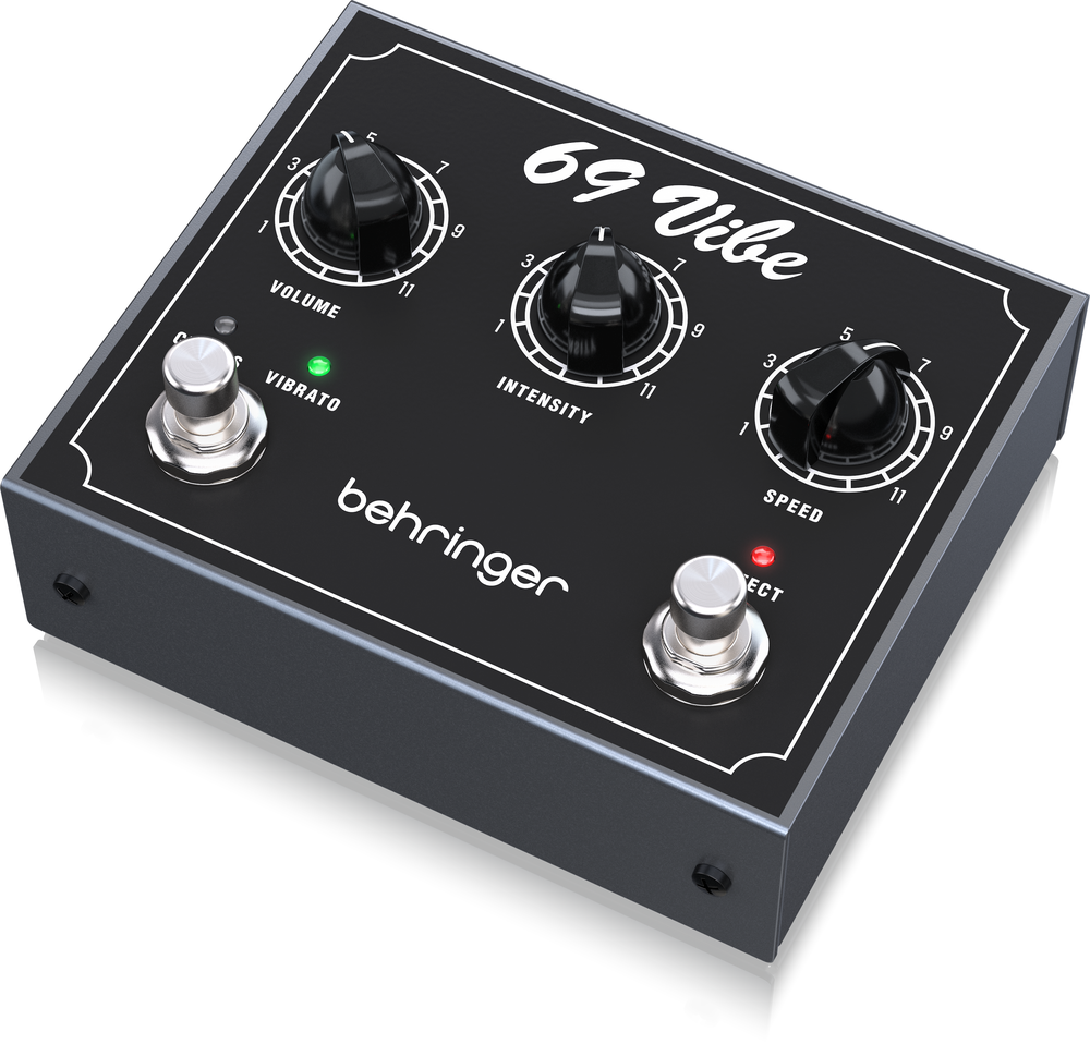 In the quest to replicate the sound of a Leslie rotating speaker, the original Shin-Ei Uni-Vibe from Japan ended up introducing a wholly unique effect that made it synonymous with late 60s rock. The signature warble and undulation surrounding an overdriven guitar tone became the signature sound of the legendary Jimi Hendrix in hits such as Foxy Lady, Purple Haze and Machine Gun. That sound could eventually be heard in Pink Floyd’s Breathe and Pearl Jam’s Black. The Behringer 69 VIBE is chock full of soul and aims to bring that same, authentic syrupy sound onto your pedal board without breaking the bank!