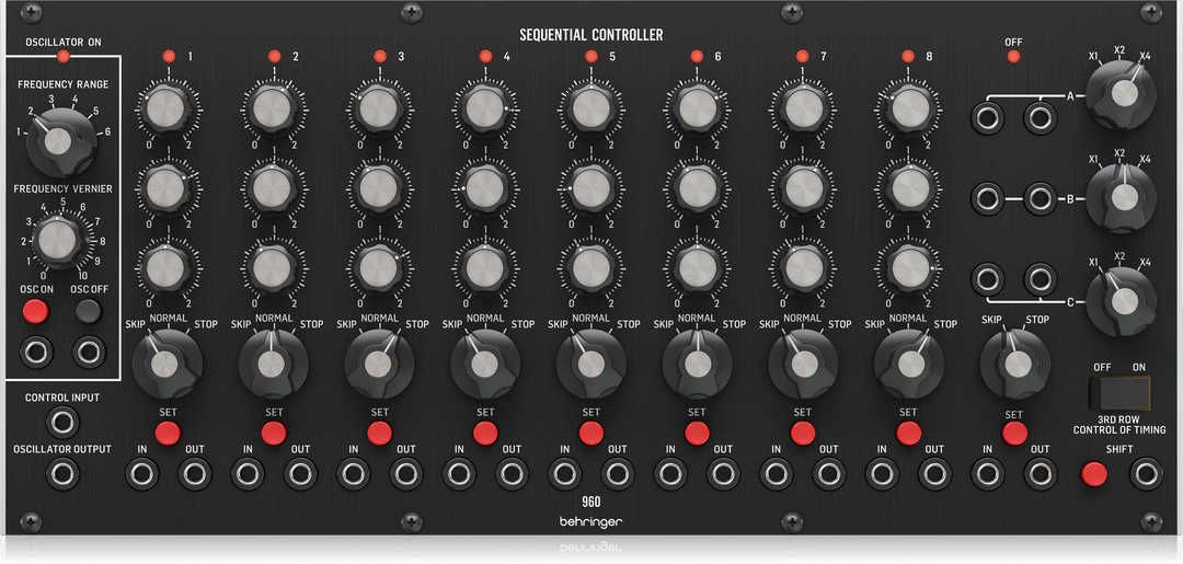 Enter the Behringer 960 SEQUENCER CONTROLLER. An authentic reproduction of the circuitry from the Modular 55 series used by the worlds most famous pop, rock and jazz musicians. Now you can build your very own, unique synthesizer that can fit in a standard Eurorack case for a very affordable price. Mix and match with specific modules to customize your synth and complement the genre of music you play or go all out and have a room filled from floor to ceiling with modules thatll fulfill any synth geeks wildest dreams.
