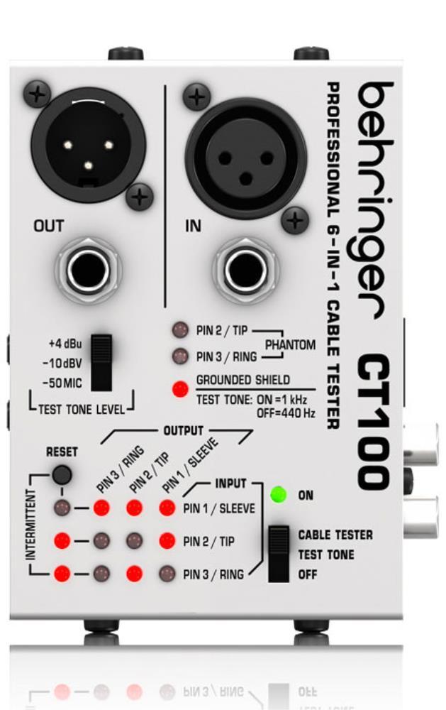 The Cable Tester CT100 is the smart, portable and unbelievably affordable way to ensure your next show or recording session runs smoothly. Ask your BEHRINGER dealer about this little gem today. It just may become the most important tool in your kit!Now you can test your cables Efficiently Effectively and InExpensivey .A PROFESSIONAL MUST HAVE for all Sound Engineers and Recording Studios