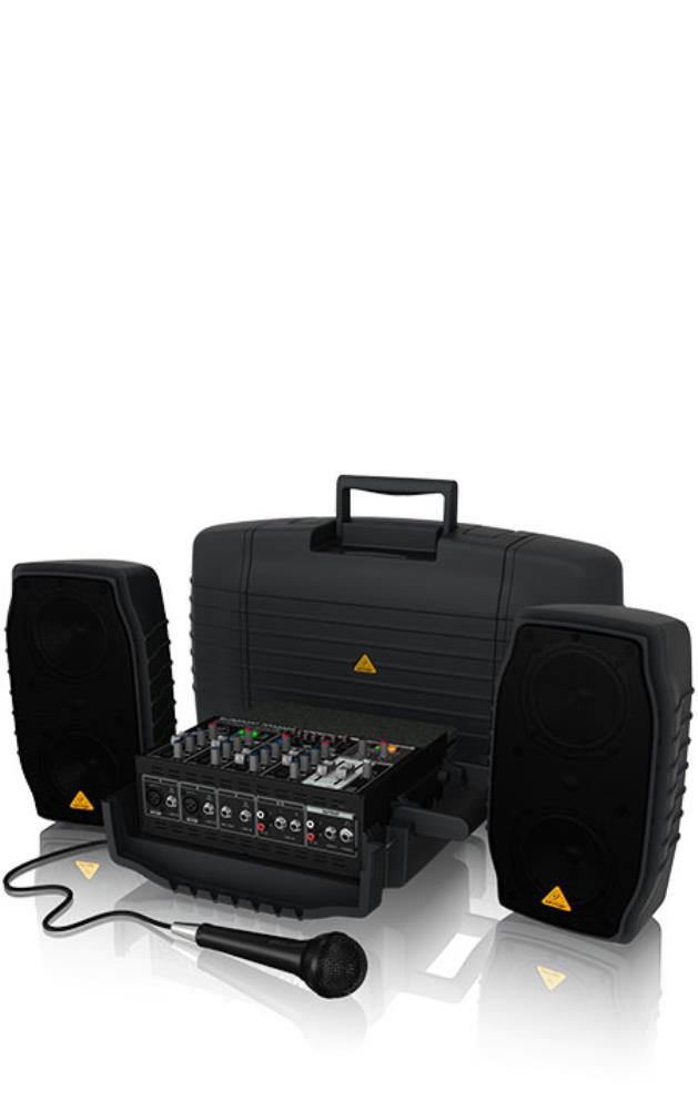 it has been engineered with 200 Watts of massive output power, the PPA200 sets up in just minutes and provides room-filling sound, all in a rugged, carry-on style briefcase that is perfect for everything from parties to press conferences to sporting events. Everything you need is included in a convenient and easy-to-use package: two detachable speakers; a high-quality, “wireless-ready” 5-channel mixer; a Behringer XM1800S microphone with a 20' cable and clip; plus two speaker cables so you are ready to go.