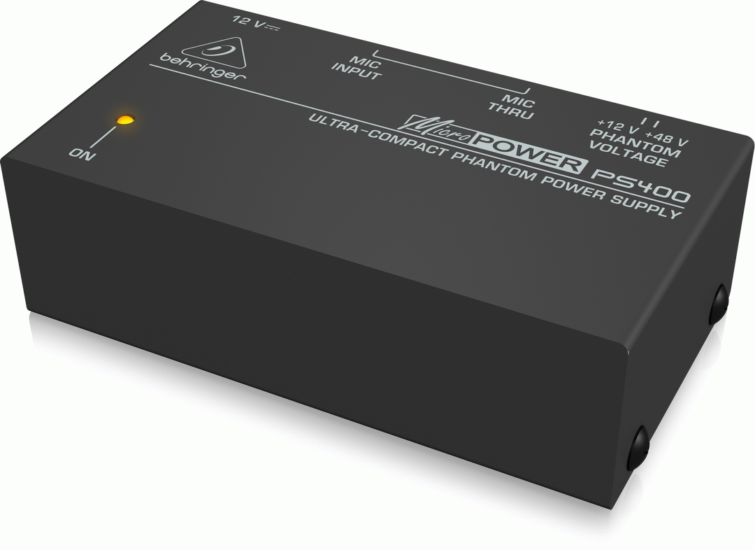 Studio-grade condenser microphones really sound great for capturing vocals, drums and other acoustic instruments, but what if your mixer doesnt provide the phantom power you need to make them work their magic! The ultra-compact MICROPOWER PS400 can solve all of that, and it's small enough to fit in your pocket with a price tag to match! Universal phantom power supply for any condenser microphone Selectable +12 / +48 V power supply Ultra-low noise audio performance DC 12 V adapter included Designed and engineered in Germany