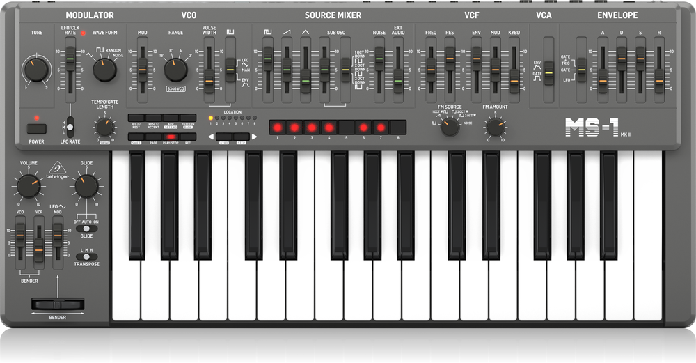 Great care has been taken in engineering the MS-1 MK II-GY, including the true to the original analogue circuitry, legendary VCO, VCF and VCA designs. This highly-focused attention to detail is what gives the MS-1 MK II-GY its ultra-flexible sound shaping capability, which covers everything from super-fat bass and lead tones to stunning effects and all the way out to the otherworldly sounds of your imagination. MS-1 MK II-GYs authentic 3340 Voltage Controlled Oscillator (VCO) provides an incredible range of 4 simultaneously-mixable waveforms for sculpting the perfect sound. Options include: saw, triangle, square/PWM and octave-divided square sub-oscillator. Additionally, the VCO can be adjusted across a wide, 4-octave range (16', 8', 4', and 2'). This amazing flexibility gives you the tools needed to be your creative best.