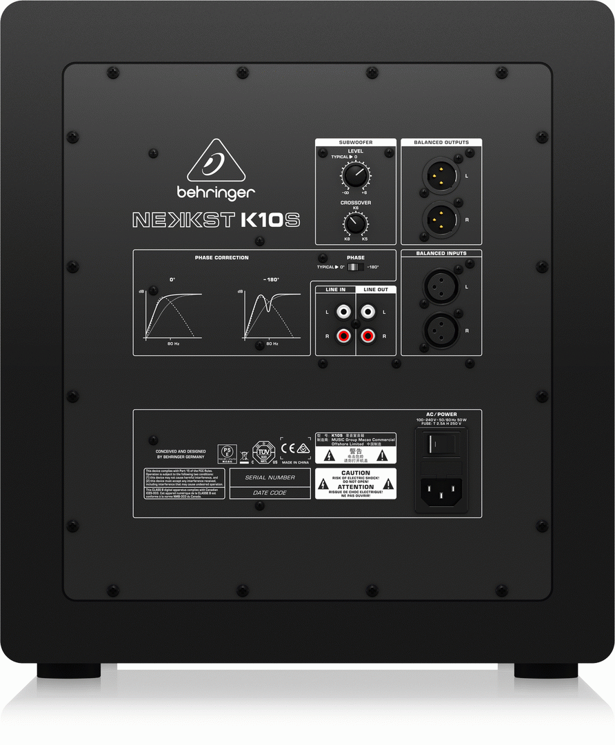 The 300-Watt NEKKST K10S Studio Subwoofer’s unparalleled, world-class performance is the product of a major collaboration between BEHRINGER audio engineers and loudspeaker master-designer/founder of KRK – Keith R. Klawitter. This amazing audiophile-grade subwoofer is ideal for all critical listening environments due to the custom-engineered bridge-mode amplifier that powers the 10" glass-fiber woofer for rich, deep and tight bass.