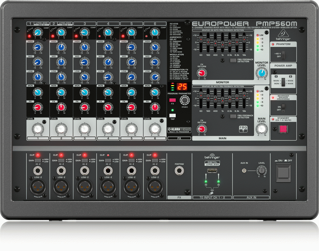 - Positive-detent gain controls with 4-segment LED metering on each channel make gain-staging easy