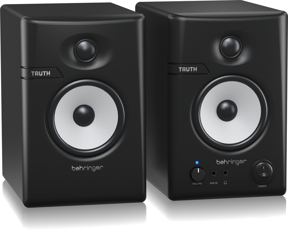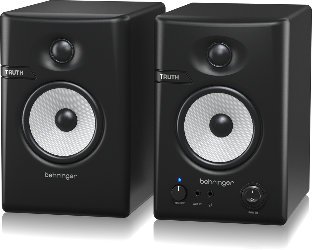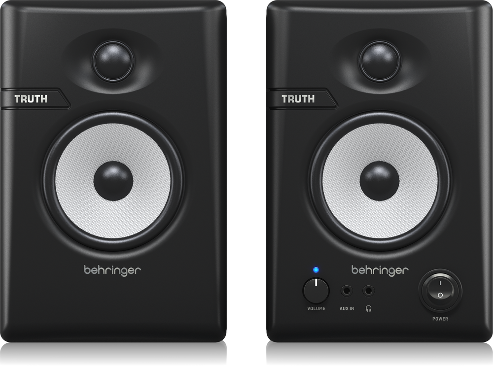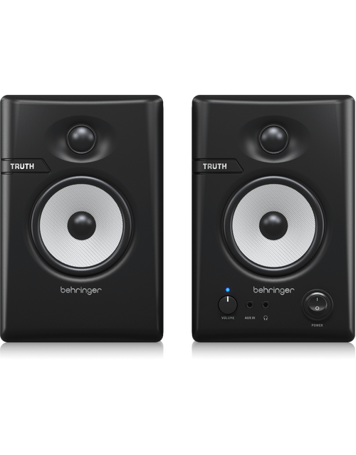 The acclaimed Behringer TRUTH series monitors are well-received by the most demanding studios, but also ideal for home recordings, gaming, and multimedia workstations. Using two stereo analogue inputs featuring TRS and RCA connectors that can be used simultaneously or mixed with a digital stereo source. The front panel includes volume control, aux input and headphone connector for convenient access and on the rear low and high frequency controls can be adjusted for acoustic tuning. Behringer TRUTH monitors a high-density composite enclosure for ultra-low diffraction and reduced low frequency distortion ensuring the bass replication is the most accurate its ever been.