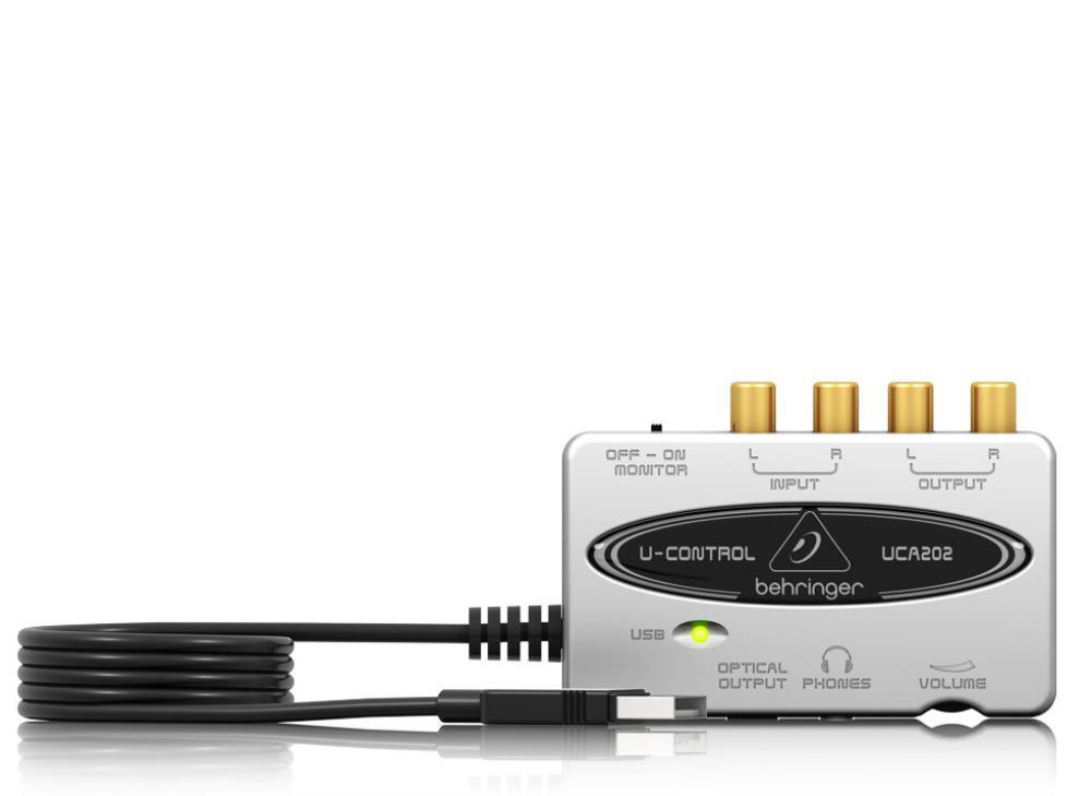 The BEHRINGER UCA202 allows you to connect instruments and other audio devices to your computer, effectively merging the analog and digital worlds. It accomplishes this by providing two analog mono Inputs and Outputs (for monitoring), USB connectivity and an additional S/PDIF optical output. The stereo headphone output features a dedicated level control and lets you listen to both the input and output. We even give you all the software you’ll need to get started! • Ultra-flexible audio interface connects your instruments, mixer, etc. with your computer for recording and playback • High-resolution 48 kHz converters for high-end audio quality • Works with your PC or Mac* computer—no setup or drivers required. Free audio recording and editing software downloadable at www.behringer.com • Stereo Headphone output with dedicated Level control lets you monitor both input and output • Additional S/PDIF optical output for direct digital conversion • Powered via USB—no external power supply needed • Designed and engineered in Germany