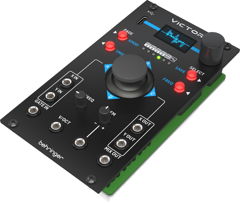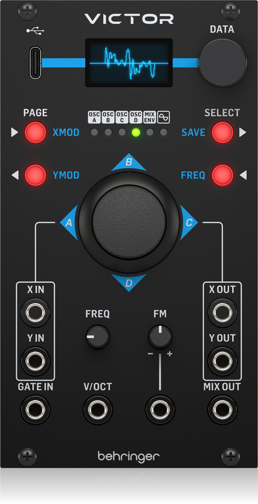 It’s morphin’ time! The Behringer VICTOR quad vector morphing oscillator module is here and it’s ready to take your waveforms and transform them into searing lead tones, epic sounding chords and moody, ethereal soundscapes with the flick of a joystick! The VICTOR features 4 vector oscillators that can be manipulated and shaped by moving the joystick. And because the VICTOR uses wavetable synthesis, up to 128 waveforms are available to you, making this module really versatile and a great addition to your setup.