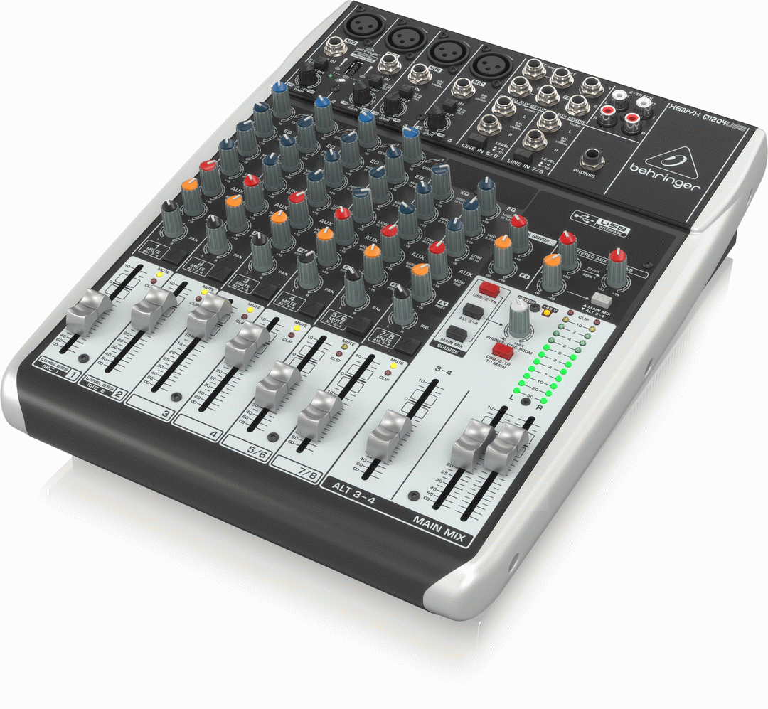 Premium 12-input 2/2-Bus Mixer with Xenyx Mix Preamps and Compressors, wireless alternative and usb/audio interface. The compact Q1204USB allows you to effortlessly achieve the premium-quality sound you want.