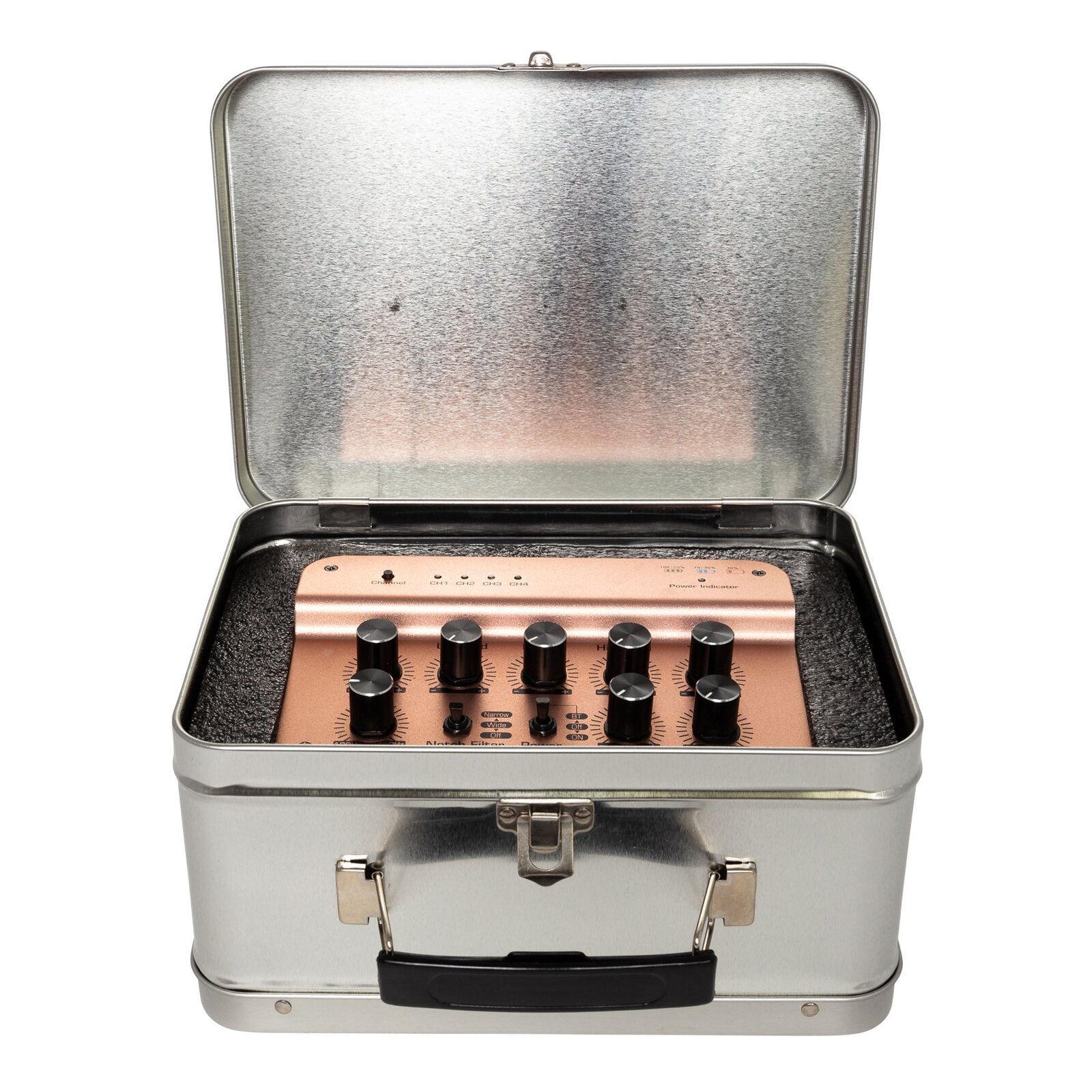 The four channel preamp is Bluetooth compatible and can be paired with your smartphone for easy playback and backing tracks. The Charisma also includes an inbuilt rechargeable battery with up to 8 hours of operation on a single charge, easily recharged via the supplied USB cable.