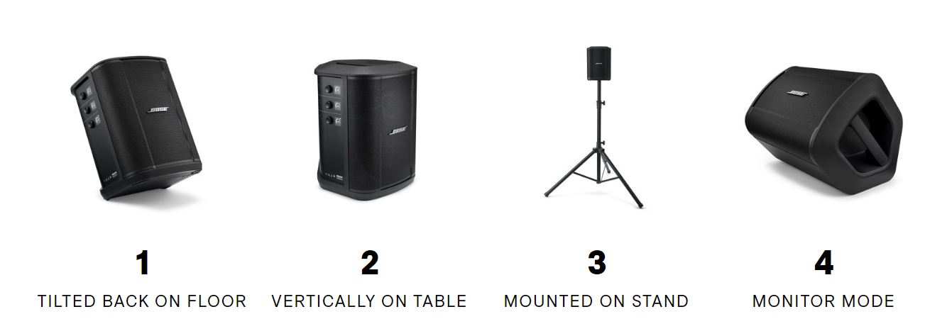 With four positioning options and Auto EQ, the Bose S1 Pro+ senses it's orientation and adjust it's settings automatically for the best performance in any configuration. Place it vertically on a table, tilted back or horizontally on the floor, or mounted to a speaker stand (it’s compatible with standard 35 mm mounts).