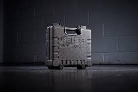 - Light and rugged molded design with a space-saving footprint, an integrated carrying handle, and detachable lid