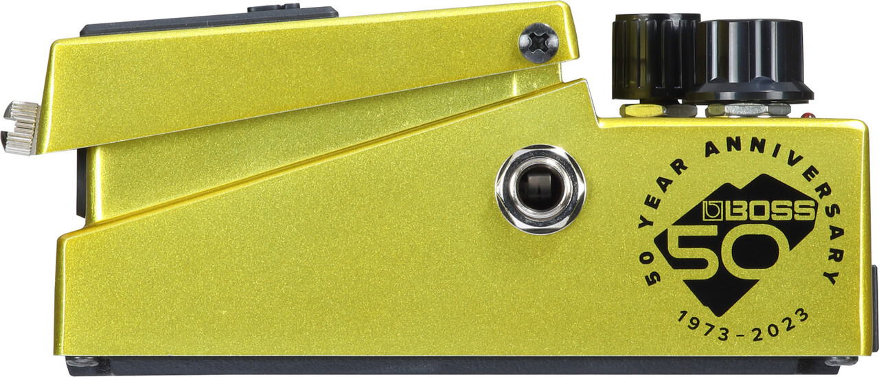 Marking the celebration of BOSS’s 50th anniversary, the limited-edition SD-1-B50A Super OverDrive sports a metallic finish; silver thumb screw; gold-capped knobs; and commemorative 50-year anniversary emblem. Appearing in exclusive livery with a dedicated 4-digit serial number and bespoke packaging, the SD-1-B50A features the same beloved circuitry as the standard production SD-1 Super OverDrive. This collectible version is available in strictly limited numbers of no more than 7,000 units worldwide.