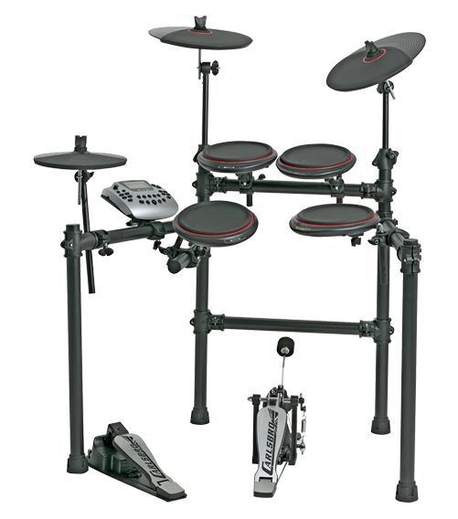 A small-footprint electronic drum set with 5 pads and 2 pedals is called the Carlsbro Club100. containing one snare pad, two tom pads, one cymbal pad, one bass pedal, and one HiHat cymbal pad with a foot controller pedal. For drummers wishing to conserve room in the studio or use as a practise tool that is incredibly portable and small, this reduced kit is ideal for younger drummers and novices.A small-footprint electronic drum set with 5 pads and 2 pedals is called the Carlsbro Club100. containing one snare pad, two tom pads, one cymbal pad, one bass pedal, and one HiHat cymbal pad with a foot controller pedal. For drummers wishing to conserve room in the studio or use as a practise tool that is incredibly portable and small, this reduced kit is ideal for younger drummers and novices.