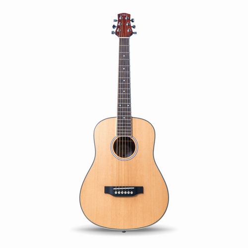 Designed with carefully selected materials, the Carry-on Mini Acoustic Guitar features a mahogany body, a spruce top, and an Okoume neck. It is beautifully finished with an elegant white and black binding, providing a sophisticated look to complement its exceptional sound quality.