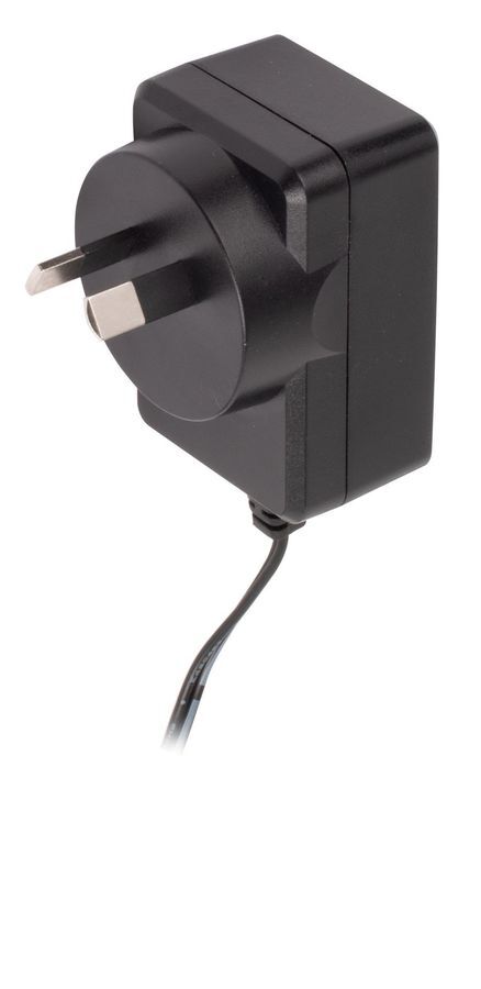 Switch mode AC/DC power adaptor. Exclusive FZ noise reduction filter for quieter operation. Single space design. Output 9v DC, 1000 mA. 2.1mm centre negative right angle female plug. Input 100-240v AC.