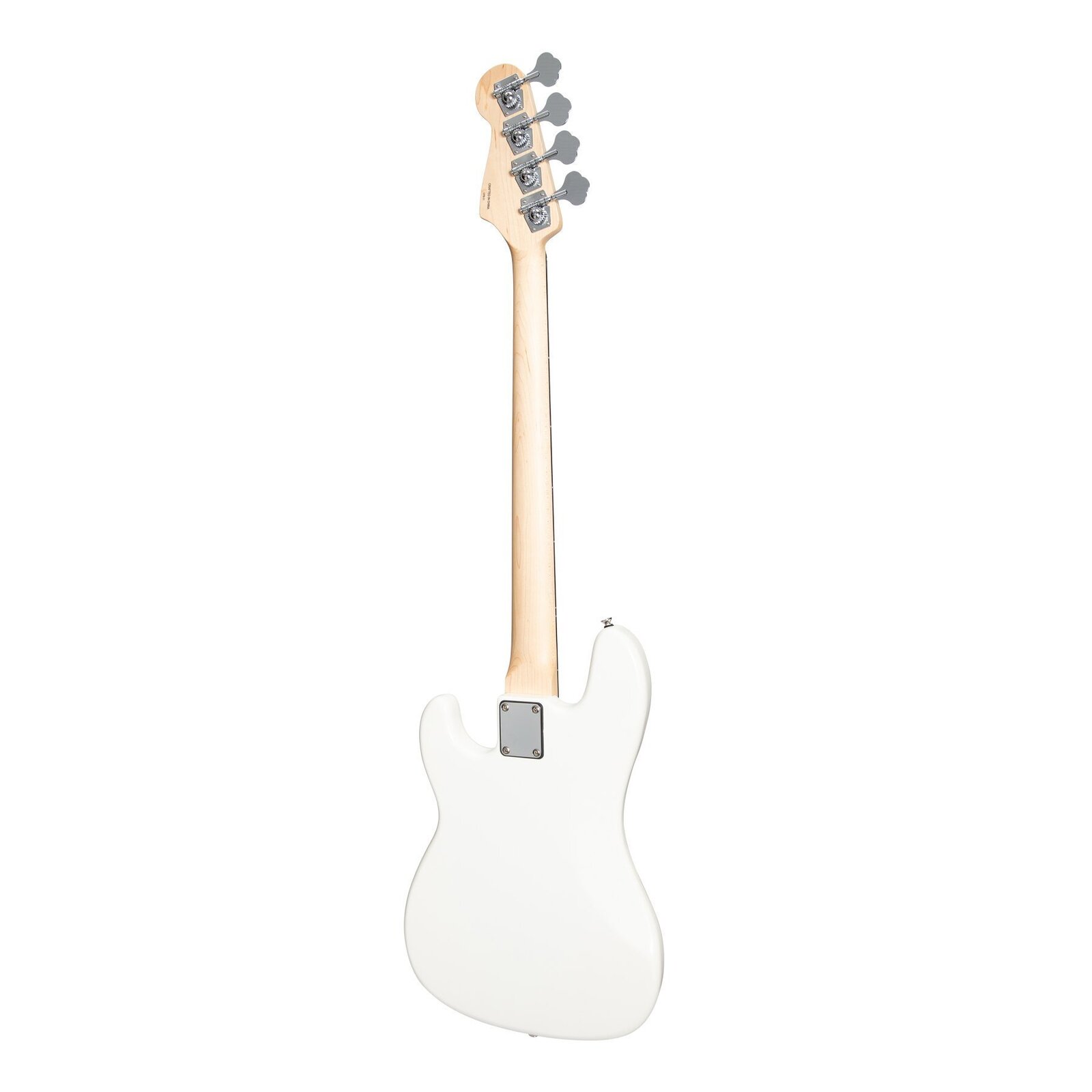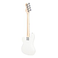 Features include classic P-style design, medium 21 fret neck, passive split single coil pickup with master volume and tone controls, vintage style bridge and knurled barrel knobs.