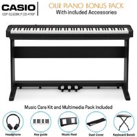 Casio CDP-S160BK 88 Key Digital Piano (Black) BUNDLE Incl CS470 Wooden Stand with Inbuilt Tri-Pedal Unit + Bonus Accessories