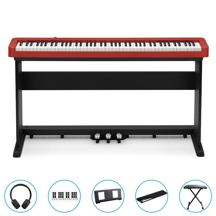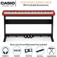 Casio CDP-S160RD 88 Key Digital Piano (Red) BUNDLE Incl CS470 Wooden Stand with Inbuilt Tri-Pedal Unit + Bonus Accessories