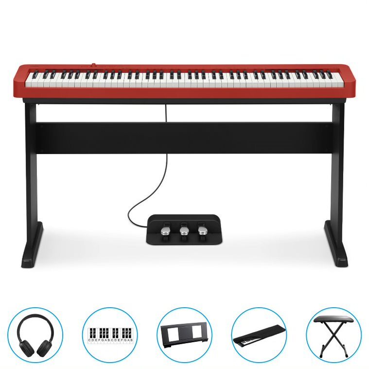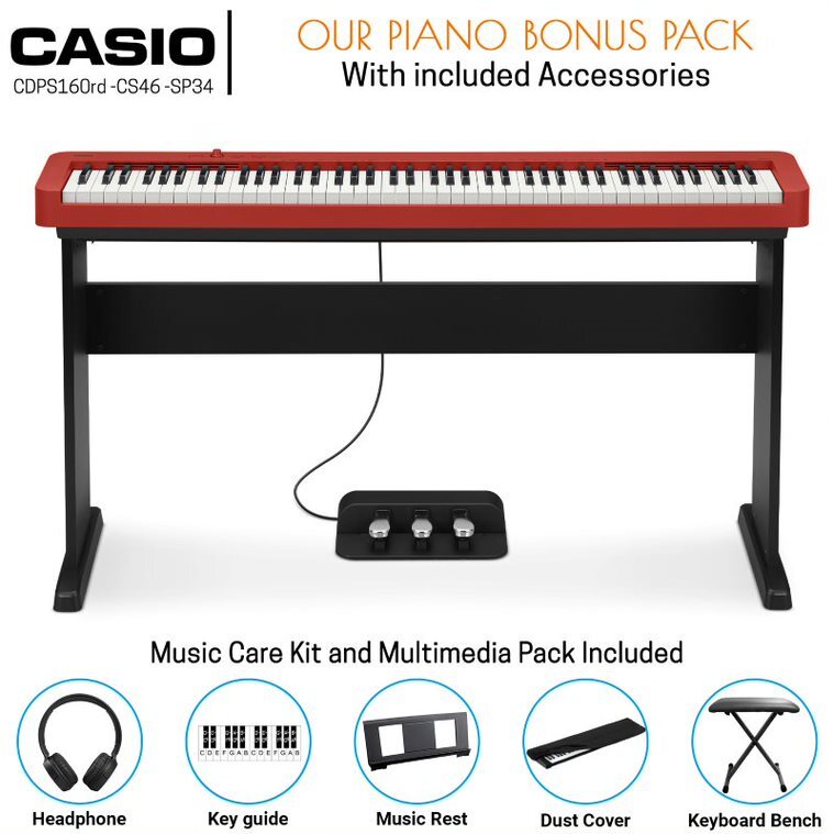 Casio CDP-S160RD 88 Key Digital Piano (Red) BUNDLE Incl CS46 Wooden Stand + SP34 Tri-Pedal + Bonus Accessories