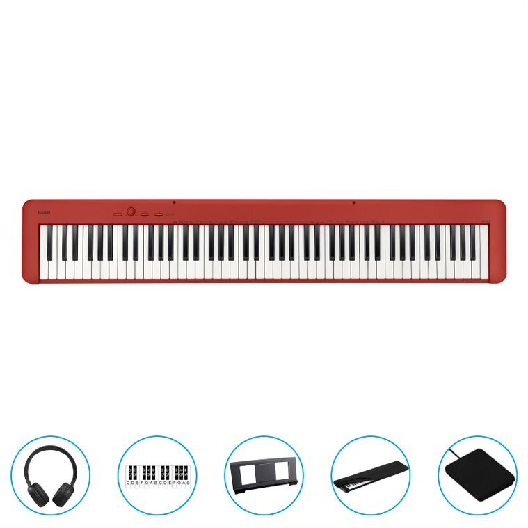 Casio CDP-S160RD 88 Key Weighted Action Digital Piano (Red) w/ Bonus Accessories