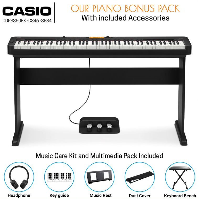 Casio CDP-S360BK 88 Key Digital Piano (Black) w/ Bonus Accessories