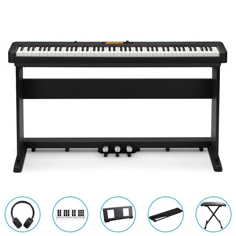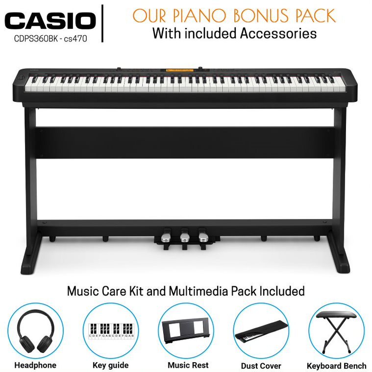 Casio CDP-S360BK 88 Key Digital Piano (Black) BUNDLE Incl CS470 Wooden Stand with Inbuilt Tri-Pedal Unit + Bonus Accessories