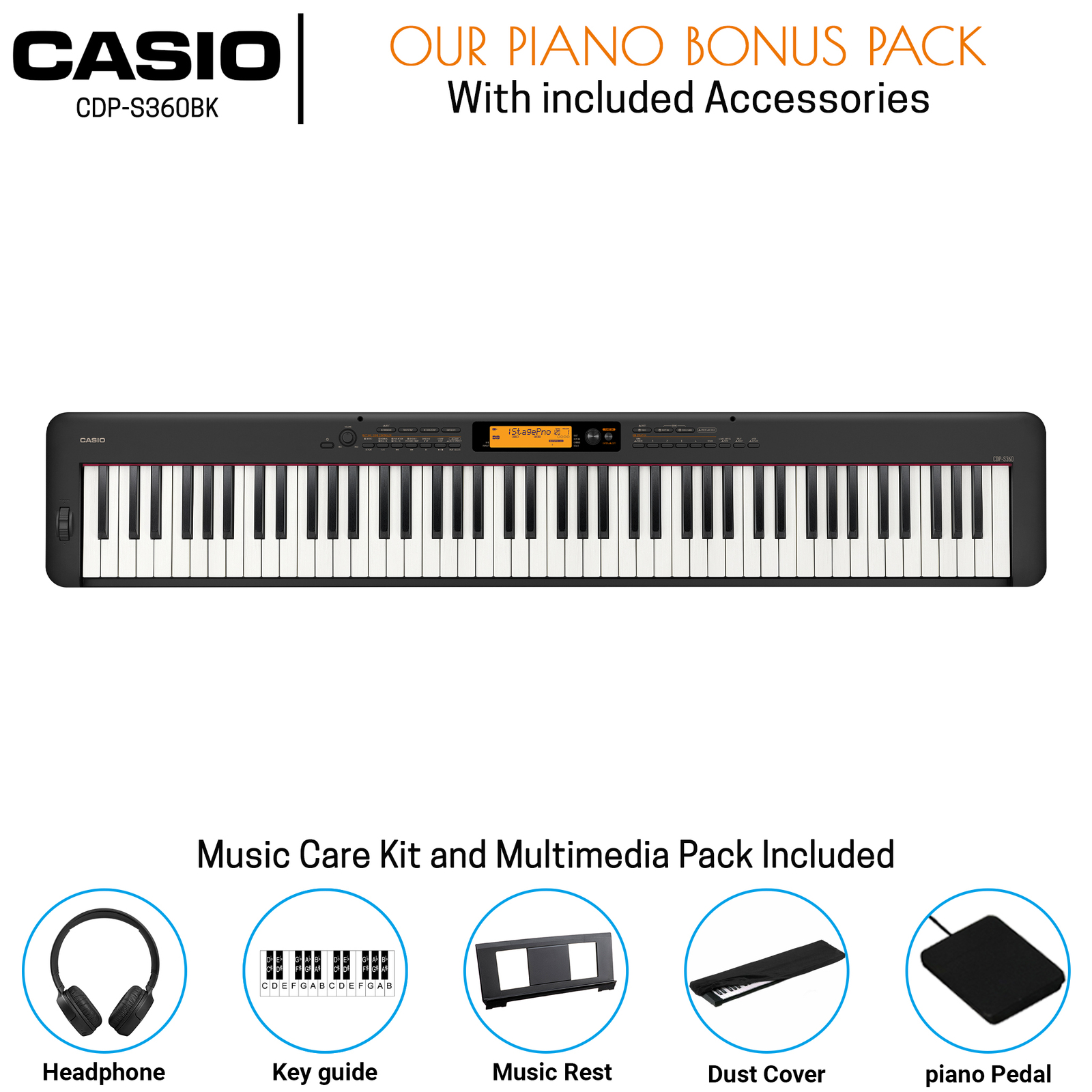 Casio CDP-S360BK 88 Key Digital Piano (Black) w/ Bonus Accessories