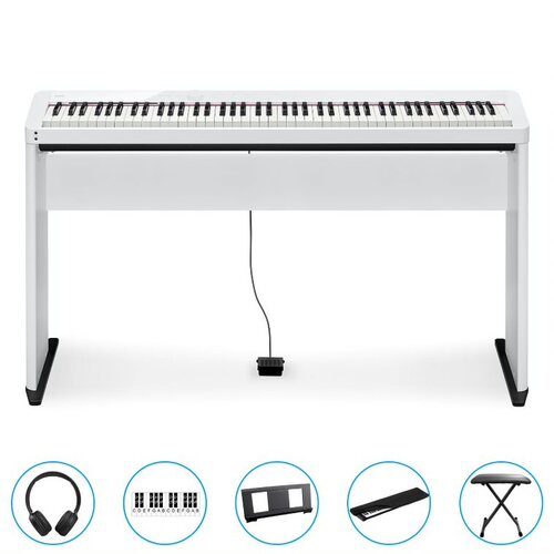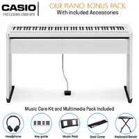 Casio Privia PX-S1100WE Compact Digital Piano (White) BUNDLE Incl CS68 Wooden Stand + Stool + Bonus Accessories