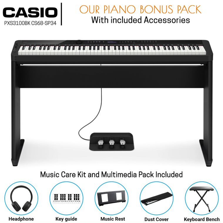 Casio PXS3100BK Portable Digital Piano (Black) BUNDLE Incl CS68 Wooden Stand + SP34 Tri-Pedal + Bonus Accessories