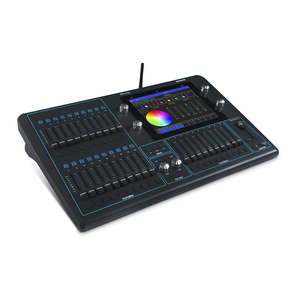 • 20 multi-function fixture faders with 3 different modes - Fixture, Group and Cue