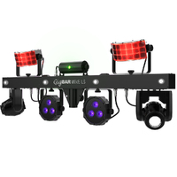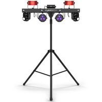 - 5-in-1 lighting system that includes moving heads, derbies, washes, a laser and strobe effect pre-mounted on a single bar