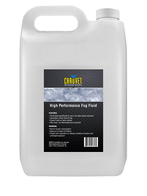 FJ5 is a premium smoke machine fluid designed to give your smoke machine the best output and performance. Specially formulated to provide a dense white fog from your smoke machine, without any off putting odours or residue. Perfect for use with your Chauvet DJ Hurricane smoke machine, or other water based smoke machine.- Formulated specifically for use in all water-based machines